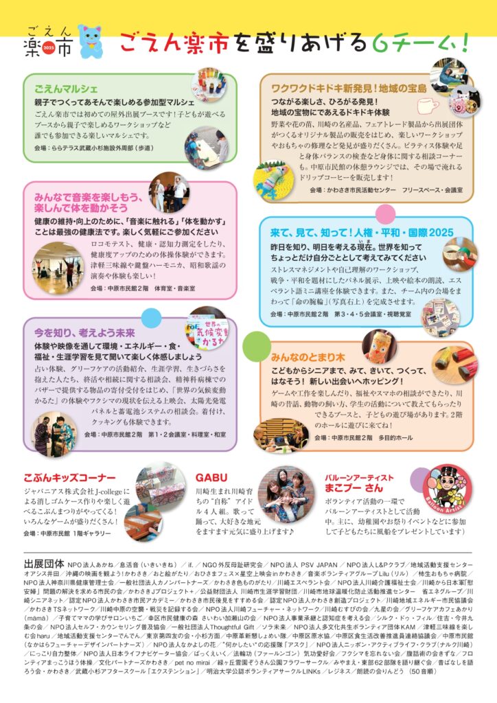 ごえん楽市は、川崎市内で活動する市民活動団体と出会える年1回の見本市です。