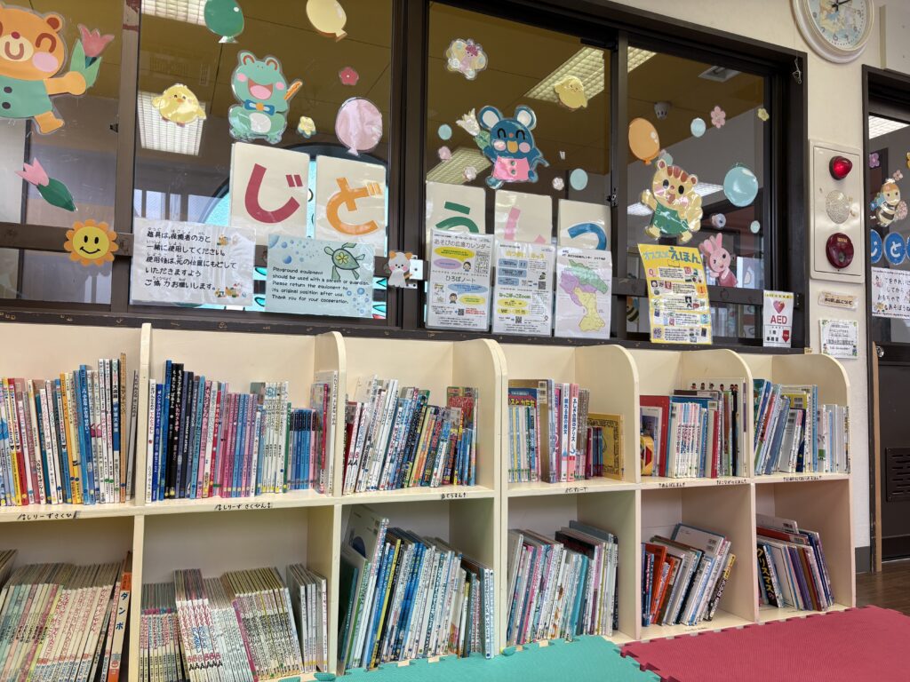 2階の児童室は大変広々としているのですが、小学生以上は入れないため、まだ歩けないような0歳児でも安心して遊ばせることができます。