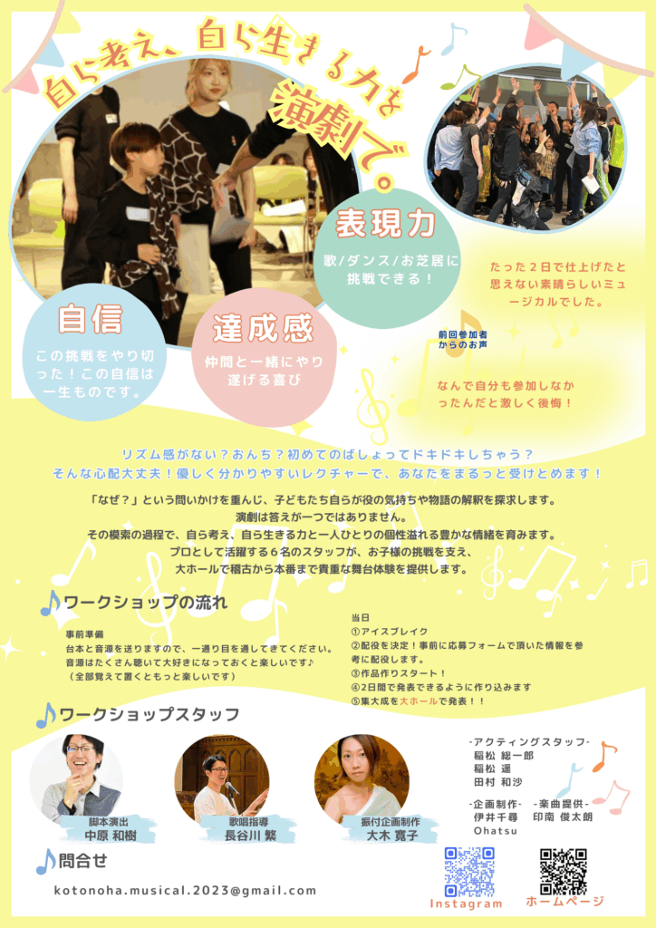 夢の舞台づくり!2日間でミュージカルを作り上げるプログラム。