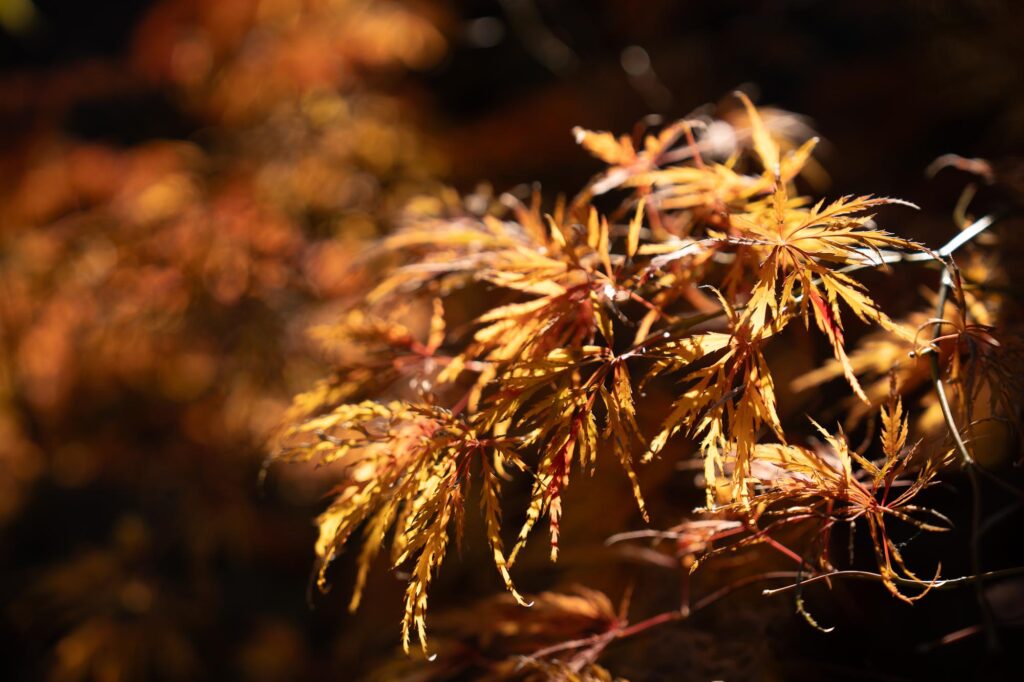 ちょうど色づいた部分に日が当たり、黄金色に輝いて、花火を思わせる色と形が印象的でした。