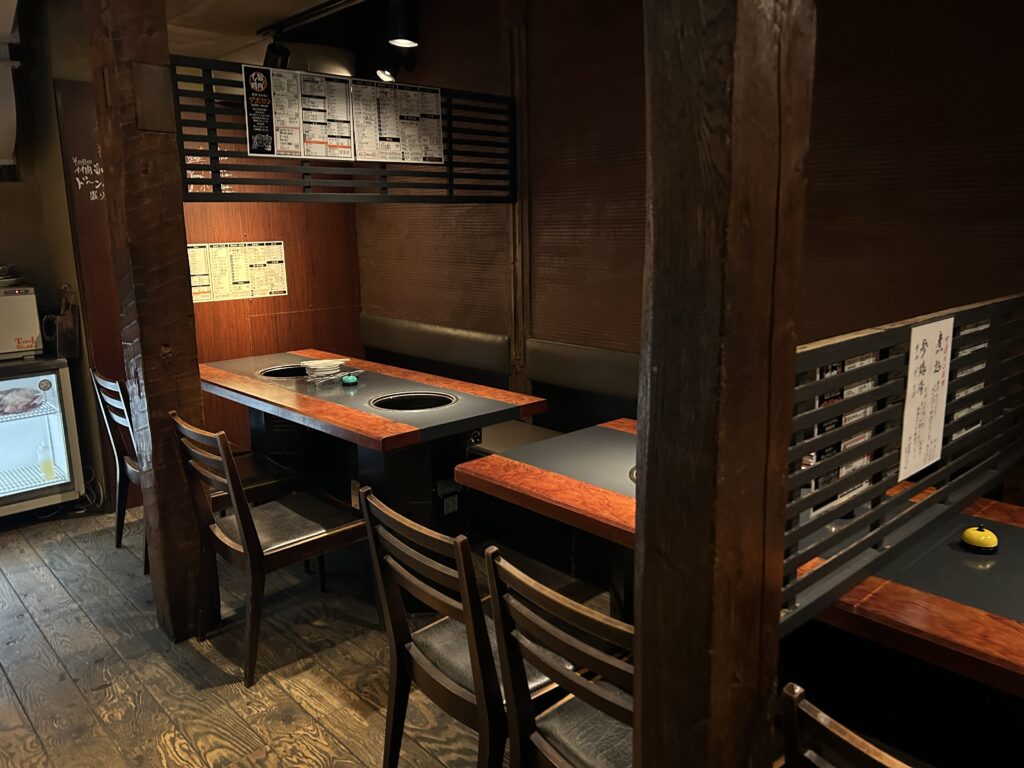 元々、『牛角』 だった空間を居抜きして使っているそうで、広々とした店内には、カウンターやテーブル、個室がそろいます。おひとり様はもちろん、友人や家族とも気兼ねなく利用できるのは、嬉しい限り。飾らない雰囲気も、この店ではいいアクセントになっています。