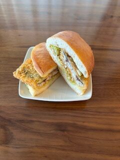 お次は総菜パン。大きなアジフライが丸ごとサンドされたボリューミーな一品。