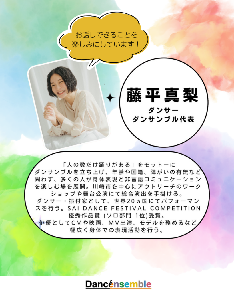この度、ご自身もダンサー、女優としてご活躍されてる藤平真梨さんがDancénsemble代表として壁打ちの会に挑みます。