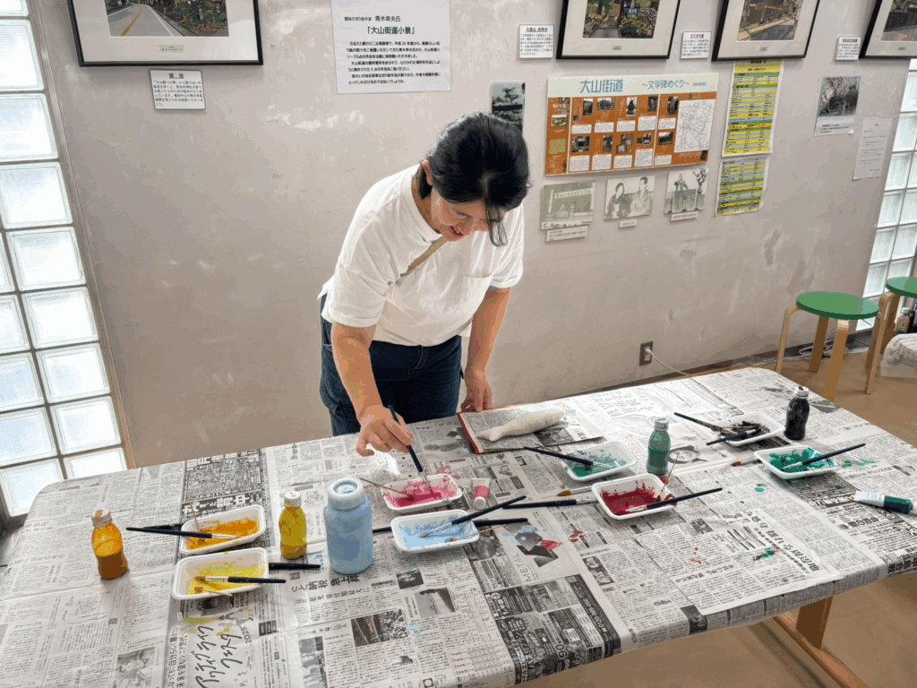 岡本和泉さんは、大山街道に魅せられて、大山街道に何度も足を運びながらその景色をスケッチされたそう。やさしくて、かわいらしくて素敵な絵のタッチです。
