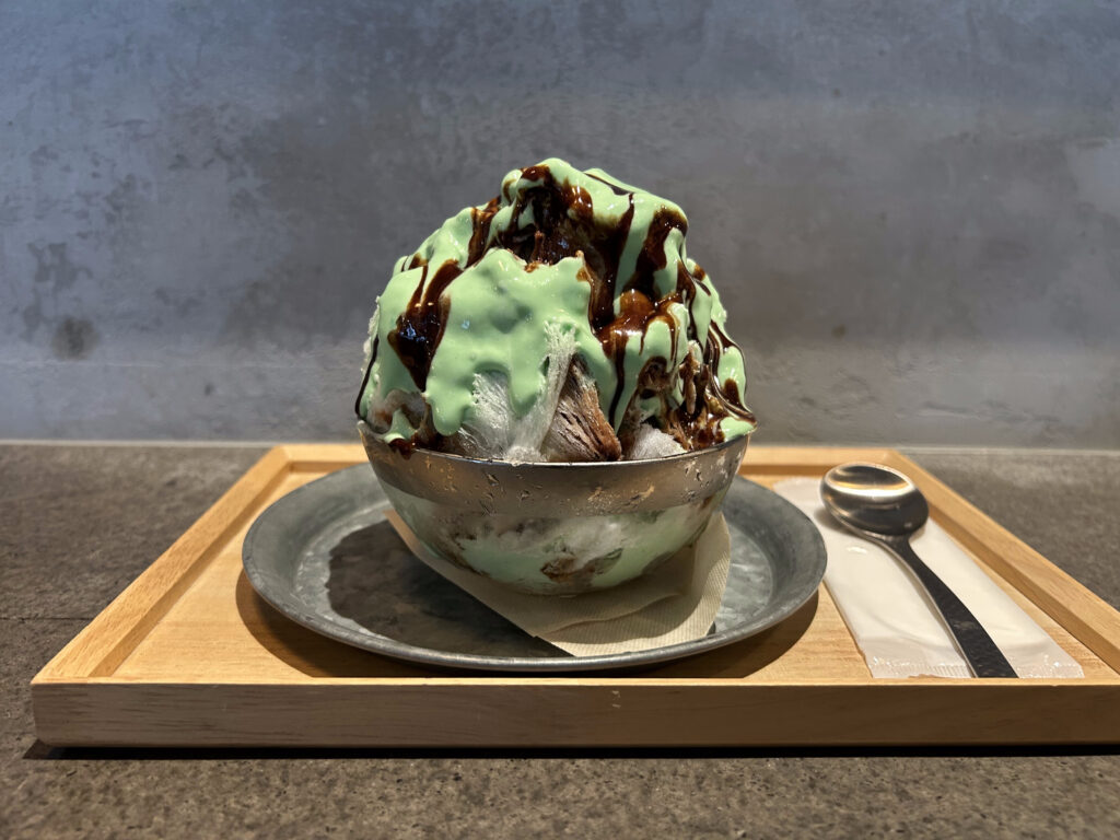 『Len Cafe』を語る上で、忘れてはならないのが、夏季限定のかき氷。アイスクリームでは定番の「チョコミント」も、氷ではかなり希少。ひと口目は驚くが、不思議と手が止まらなくなる美味しさ。スパイスカレーで火照った体に、この清涼感はヤミツキになる…!