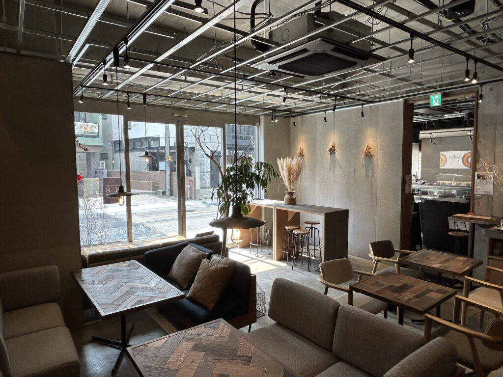 『Len Cafe』。テーブル12席とソファ11席のほかに、カウンターが6席。天井が高く、席間のゆとりもあるので、居心地がいい。