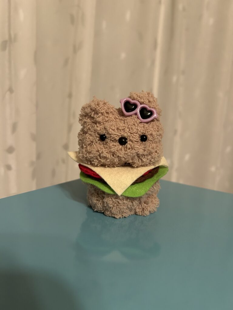ふわふわなモールを使って、初めて作ったハンバーガー型のくまを作った5歳は「ハンバーグやレタス(フェルト)を挟むのが楽しかった」「目が可愛くできた」と、とても嬉しそうに感想を伝えてくれました。