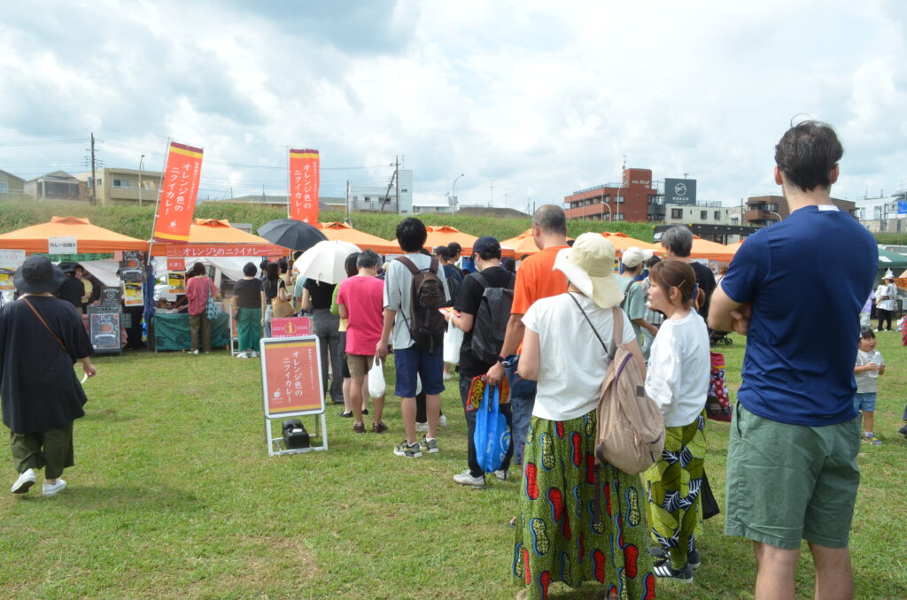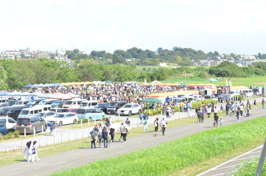 会場は二子新地駅側の多摩川河川敷。駅からもほど近く、区外からもたくさんの来場者の姿が。