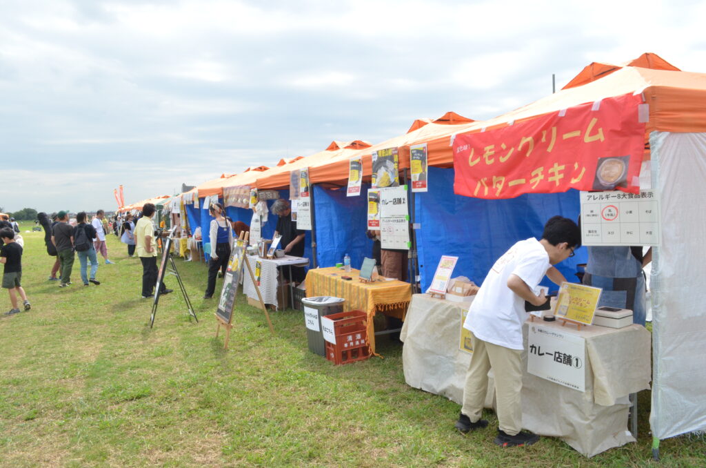 カレーブースのテントでは、各店準備に大忙しの模様。1~17番まで順番に並んでいるので、来場者にもわかりやすい配置がありがたい。