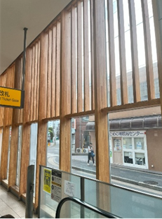 高津駅構内の様子。温かみを感じる窓枠の木目はもはや駅の象徴と言ってよいだろう。