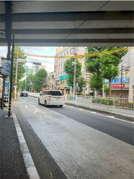 高津駅改札から府中街道を望み見る。交通量の多さに驚きを覚える。