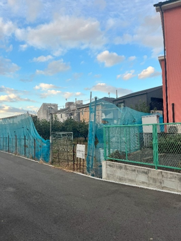 家々の並ぶ道を通り、どんどん道なりに進んでいく。家が建つ予定の土地を経て、見つけたのはなんと畑。青い幕ごしに何を栽培しているか覗いてみると、どうやら梨のようだ。たしかに、高津区は『多摩川梨』が有名である。住宅街かと思えば畑が広がる、どんどん変わっていく景色に心を躍らせながら道なりに進んでいくと、次は大きな建物が見えてきた。