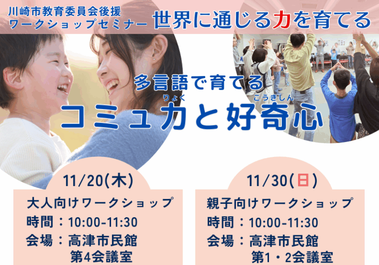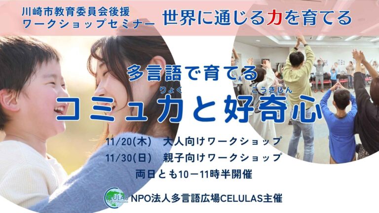 昨年、キャンセル待ちが多数出た多言語ワークショップを、溝の口でまた開催することが決定しました。前回同様、川崎市教育委員会のご後援をいただいての開催です。 子どものコミュ力や好奇心を伸ばしたいけど、どうすれば…?と思ってい […] -
