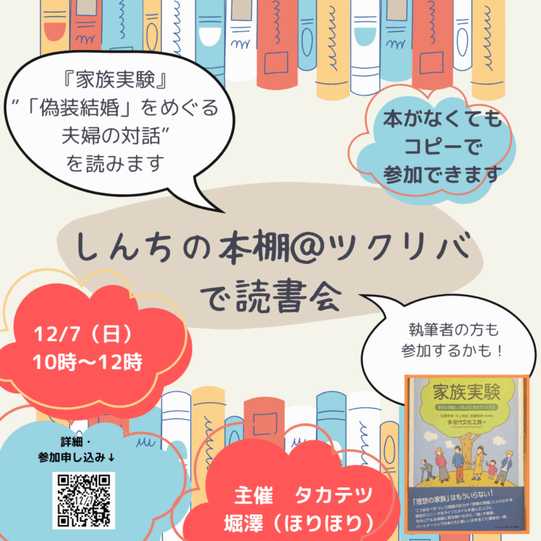 自分が読みたい本をただ読むだけの会です。 開催日時: 2025年11月23日(日)9:00-11:00 開催地: しんちの本棚(川崎市高津区二子2-8-8)<シェア本棚です> 参加無料 定員7名(先着順) 【当日の流れ】 […]