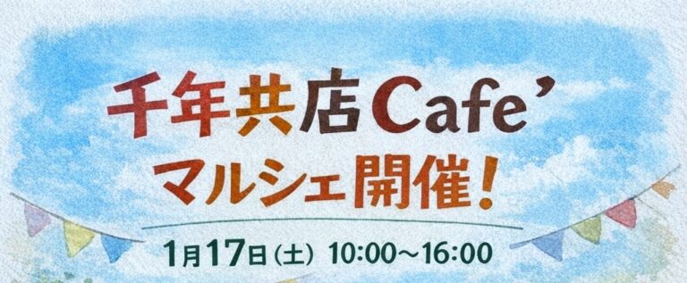 🎄千年共店マルシェのお知らせ🎄 OPEN 10:00-16:00開催 (お店は8:30〜20:00) 雑貨もスイーツも、全部『可愛い』がそろいます🎁 今回、千年共店Cafe‘で取り扱いのある作家さん以外にも、 高津区で活 […] -